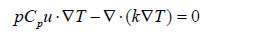 where w is the channel width, h is the channel height, μ is the dynamic viscosity of the PCR mixture, Δp is the applied pressure drop, and L is the channel length. The cross-sectional average velocity follows directly: ū = Q / (w h). Temperature distribution within the chip is governed by the energy equation, which in its general unsteady form reads: