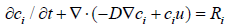 where Dᵢ denotes the diffusion coefficient (10⁻⁷ cm²/s) and cᵢ is the species concentration (mol/m³). The term Rᵢ (mol/(m³·s)) corresponds to the species› net reaction rate.