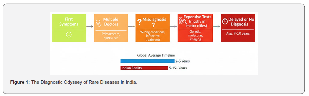 Rare diseases are often defined by prevalence affecting fewer than 1 in 2,000 people in the Europe but in India, where such a unified definition is missing, rarity takes on broader, more complex meanings [1]. It can mean being undiagnosed for years, being misunderstood by clinicians, or being stigmatized by society. The National Policy for Rare Diseases (2021) identifies about 450 diseases, though over 7,000 rare conditions exist globally. While individual diseases are uncommon, collectively they affect more than 70 million Indians [2]. In my practice, I frequently meet families from across India-rural Karnataka, Maharashtra to urban Hyderabad who have spent years looking for answers. Their children often suffer from progressive neurological disorders, rare skeletal dysplasias, or inherited metabolic errors. They do not consider their child’s condition “rare.” For them, it is a constant, consuming reality. The term “rare” becomes a misnomer when lived experience is anything but rare.