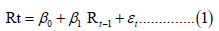 ln is the natural log, 𝜀𝑡 is residual error term for the dayt.