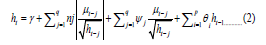 From the results presented in the table above, the mean equation shows that depending on each company stock, the average stock returns of NSE quoted companies are not the same. From the results, ACC, FBN, GTB, NES, IKJ, OAN, UBA, and ZEN have significant average positive stock returns over time, while the likes of CAD, DANS, and GUS show an insignificant positive stock returns on average over time. Conversely, many studied companies’ stocks show negative returns. Specifically, BRW, DANC, FLM, GLAXO, JBG, JOHN, LAF, NAHCO, and OKOMU shows that on average, there is significant negative stock returns on their stocks. More so, companies like PRES, TOT, UACN, UBN, ULV, UNIP, VITA, STER, CILEA, and ACAD have significant negative stock returns. However, although CONOIL, FID, LIVEST, and NEITH show a negative average stock return, it was visible that their stock returns are insignificant.