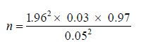The sample size shall be calculated using the Cochrane formula for sample size determination: