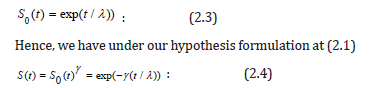 where S(t) <1: The proportional hazards alternative and the shift alternative provide different behaviors relative to the assumptions made under the alternative hypothesis. Other variations, e.g., accelerated life alternatives, would provide similar conclusions with respect to the issues below based proportional hazard or shift models and could be considered for other situations based on available information. For the purpose of illustration, we will assume a known Exponential form for the true underlying survival function under H0, given as