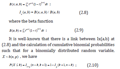 where, as above, n is the sample size, bα is the (1-β)th quantile for the binomial random variable b(n,S0(t)), i.e., bα is the critical value of the test for a given t, and Ix(a,b) is the regularized incomplete beta function, which is defined at (2.8).