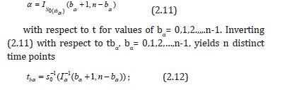 For hypothesis (1.1), we de ne b to be the upper critical value for the level test. For a sample of size n and given the one-sided direction of the test, the potential discrete values for b are 0,1,2,…,n-1, with each corresponding to a particular value of S0(t), and thus, given an underlying form for S(t), each of these values for b correspond to a particular value of t. It turns out that there is a value of t for each b such that the desired -level is precisely the Type I error level of the test, i.e., a truly exact test. In addition, we can prove why the so called “saw-toothed” behavior occurs in this setting. Towards this end let t0 < t1 <…< tn-1 denotes the n values for t such that the desired α-level is equal to the true Type I error level. This can be found by considering the regularized incomplete beta function (2.8) in the context of our test such that we solve the equation