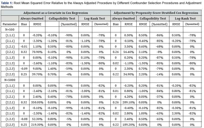 How to cite this article: Shiro T. Simulation Study of Confounder Selection Procedures using the Hoffman's Collapsibility Test. Biostat Biometrics Open Acc J. 2017: 2(3): 555590. DOI: 10.19080/BBOAJ.2017.02.555590.