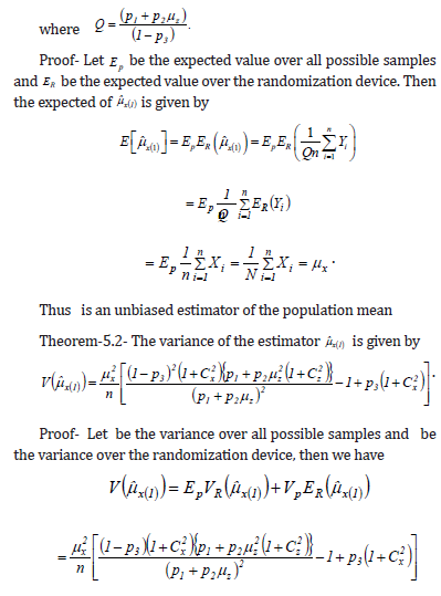 where iX denotes the true response, ZXi denotes the scrambled response and also denotes the scrambled response. Thus we have the following theorems: