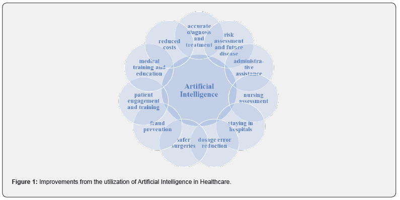 i. Accurate diagnosis and treatment, the utilization of AI will allow healthcare professionals to discover previously unseen correlations between diseases in medical data and detect subtle changes in vital signs that signal potential problems. Fortunately, there is no AI tool that can mimic the human connection. However, the advent use of AI technology and automation will significantly improve research, disease diagnosis and medical outcomes. The possible uses of AI in healthcare are vast and extensive, ranging from analyzing radiological images and overseeing lab results to anticipate outcomes using electronic health records. AI-driven predictive models in medical facilities have the potential to improve the healthcare system by enhancing productivity, efficiency, and intelligence, particularly in predicting readmission risks, complication risks, and mortality. This in turn will allow physicians to spend more time treating patients directly, recommend tailored treatment plans, and choose the best policy to treat patients with incurable diseases and other health problems [31-34]. Notably, in many countries, it is estimated that 10-20% of all serious injuries in healthcare have an incorrect, delayed or unstable diagnosis as the cause. Diagnostic errors are most common especially in emergency departments and in working environments described as stressful [35,36].
