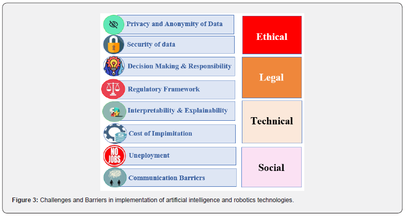 Nevertheless, the utilization of AI and robotic technologies in healthcare has sparked concerns regarding relying solely on technology to address healthcare challenges. These concerns include the importance of maintaining transparency and safeguarding data to ensure responsible deployment in sensitive healthcare scenarios. It is crucial to proceed with caution to protect patient privacy and security while also working to alleviate resistance to automated and somewhat unclear methods of assisting in various healthcare services. In the upcoming future, we will need to confront similar moral quandaries. These advantages and constraints indicate that optimizing the role of AI systems and Robotics is possible only through cooperation with human intelligence.