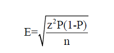 where E is the margin of error, Z is the Z-value corresponding to the desired confidence level (for 95%, Z≈1.96), p is the sample proportion (expressed as a decimal), and n is the sample size. Rearranging the formula to solve for n: