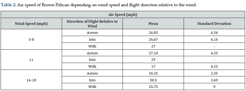 Taken together, we believe that Pennycuiks model, and the direct measurements of pelican flight under various flight conditions present a consistent view of the limits of Brown Pelican flight. Specifically, the results suggest that 35-45 mph headwinds may require considerable amounts of extra energy to navigate, and this will ultimately place an upper limit on the forward progress (measured as ground speed), and the length or duration of sustained flight, that pelicans can achieve ( note the difference between wind gusts referred to here compared to average daily wind conditions used in the statistical model) (Figure 6).