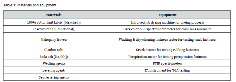 Materials and equipment (Table 1) Methods Preparation/extraction of Mahogany dye