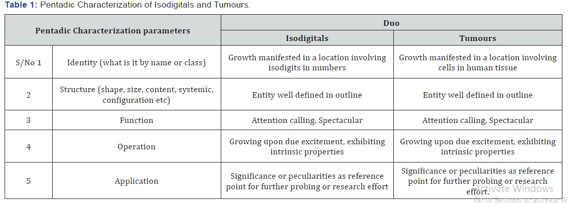 Methodology and theoretical Orientation: Tumours and isodigitals are subjected to pentadic characterization with the five parameters of identity, structure, function, operation and application for methodology. The theoretical orientation of the method is that tumours and isodigitals as growths of quantity are classic examples of quantity which is defined as the phenomenal medium of manifestation of all things, whether material or non-material. So, the two can be compared and contrasted at will in the interest of science.