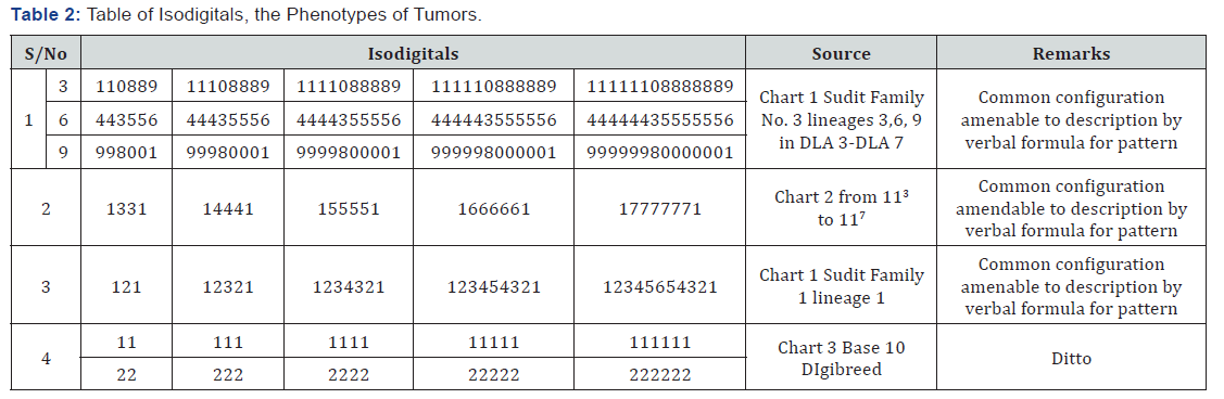 Conclusion and Significance:Tumours in humans and isodigitals in numbers are seen as phenotypes subsisting on manifestation of quantity. The peculiarities of one can serve as clues to the probing of the other for more light.