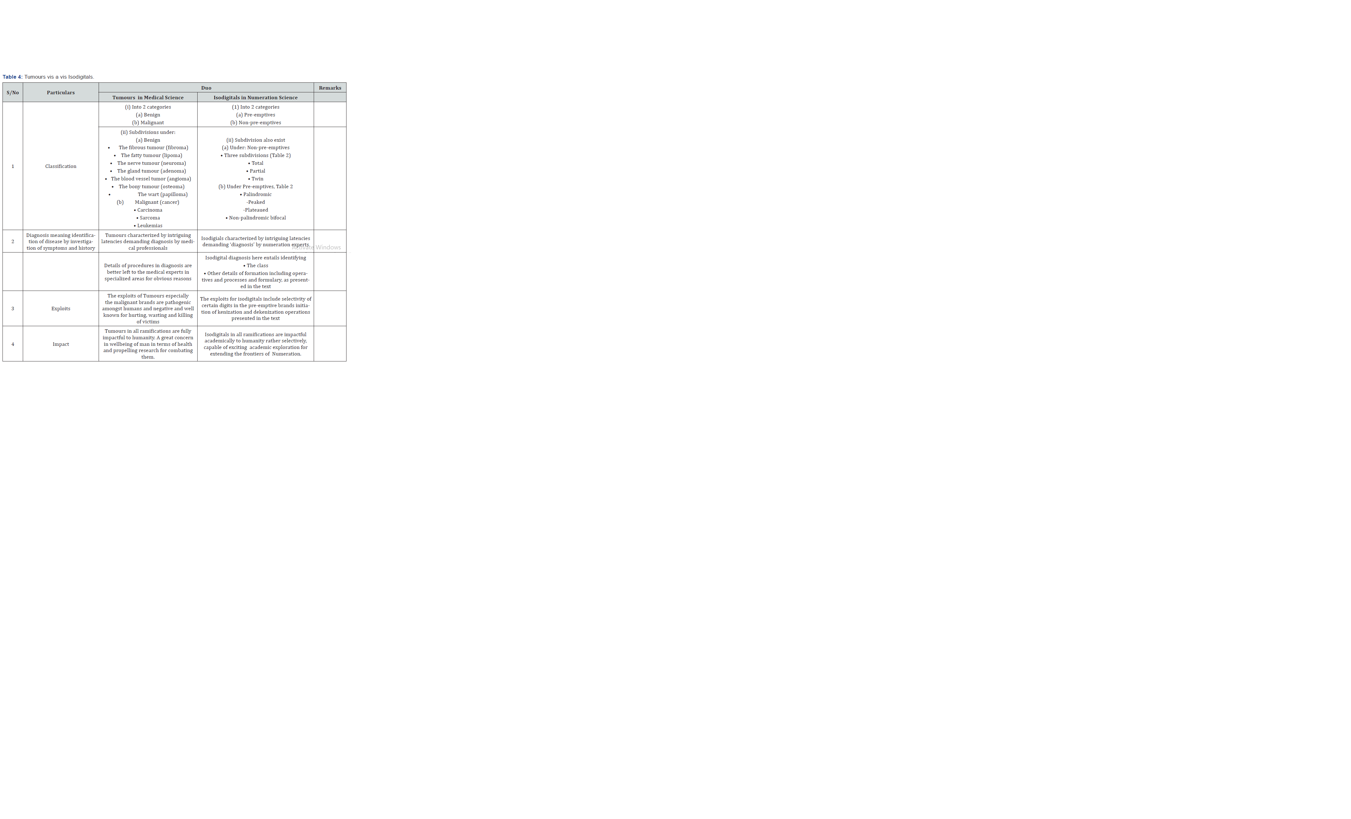 Findings:Numeration science literature on isodigitals can borrow mode of classification of tumours from medical science literature on tumours, while medical science literature on tumours can borrow verbal formulary for the description of pattern of growth of tumours from numeration science literature on isodigitals.