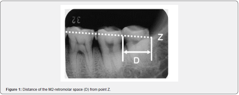 Measuring the retromolar space is difficult even in excavated skulls and even more impossible in vivo. To determine the size of the retromolar space in the present study, a “Z” point was developed on the radiographs [12]. This point is slightly different from the Xi point (near the mandibular foramen) used in orthodontics [19]. In addition, an attempt was made to compare the relative size of the M2-retromolar space with the size of the second molar over time.