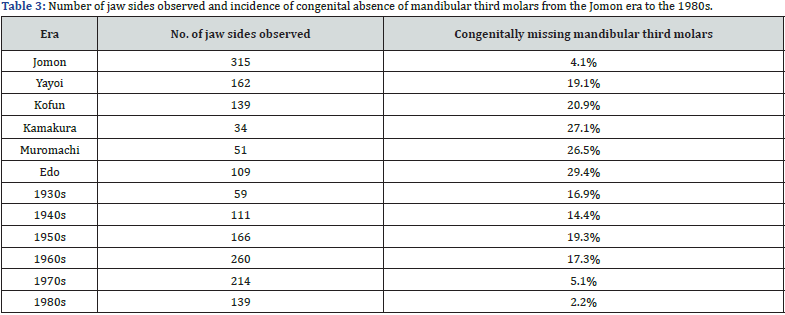 How to cite this article: Hiroyuki Yamada*. Eruption Status and Congenital Absence of Mandibular Third Molars from the Past to the Present in the Japanese Population. Glob J Arch & Anthropol. 2023; 13(3): 555861. DOI: 10.19080/GJAA.2023.13.555861