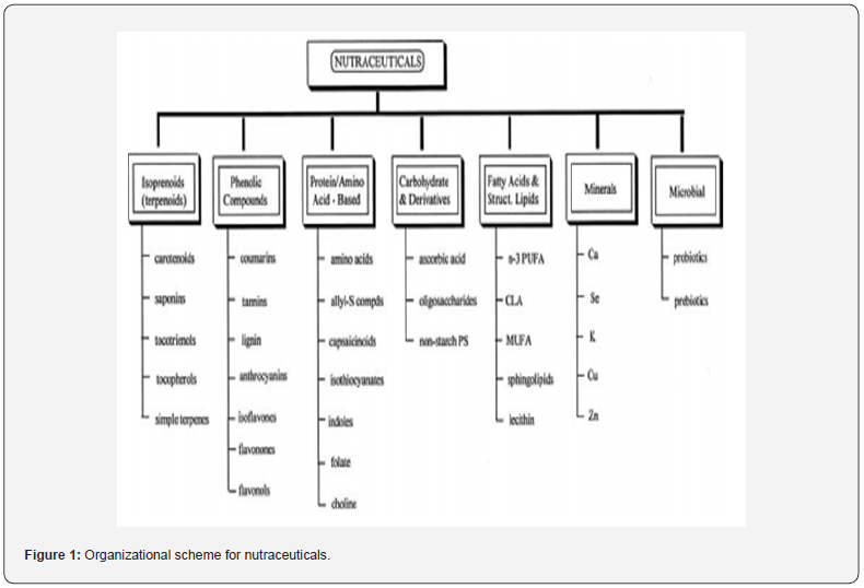 Nowadays, nutraceuticals have gained extreme interest due to their potential for food and security, other than healing. Pharmaceutical and food companies are informed about the latest trends and changing styles, which are on account of the benefits of these compounds. Most nutraceuticals maintain diversified therapeutic benefits. The present study is committed to a better understanding of nutraceuticals and their drug and therapeutic clues. It concedes the possibility that there may be plenty of disorientation related to the wording of nutraceuticals in the way that phytochemicals, pharma snacks, medical cooking, working cooking, dietary supplements, creator snacks, etc. are produced from separating in their interchangeable habits by various populations on different occasions. Pharmaceuticals are generally deliberate cures that are used primarily to treat afflictions; nevertheless, nutraceuticals are substances that are mainly thought out for the treatment of diseases. This quality between pharmaceuticals and nutraceuticals is very wrong and superficial. Pharmaceuticals and nutraceuticals, together, can cure and avoid affliction(s); however, only pharmaceuticals have political sanction. Pharmaceuticals are compounds that normally own patent protection on account of high-priced experiments. However, nutraceuticals do not need these testing documents.