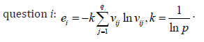 for each of the above indices, where p represents the number of questions, q the answer scale (equals to 7 in this paper), and mij the frequency of answer j to question i.