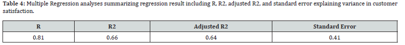 The model explains 66% of the variance in customer satisfaction, indicating a strong explanatory power.