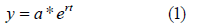 Where y is the renewable energy percentage, a is the initial value at t = 0, e is the natural logarithm base, approximately equal to 2.71828, r is the growth rate, and t is time. This model can accurately represent early-stage rapid growth but often overestimates long-term adoption due to its unbounded nature [11]. On the other hand, the logistic growth model accounts for an upper limit or carrying capacity, following equation 2: