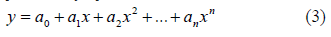 The polynomial regression can capture non-linear trends and is represented by equation 3: