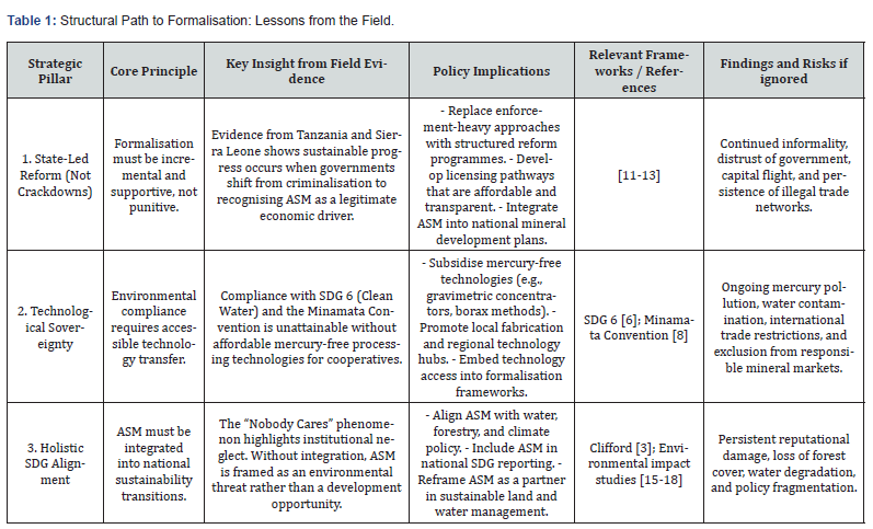 Drawing on evidence from unstable political settlements and the failed “rituals of inclusion” in mineral policy, this research contends that formalisation is not merely a development objective but a strategic necessity for global supply chain integrity. True sustainability requires moving beyond punitive “crackdowns” toward state-led, inclusive formalisation that provides technical assistance for mercury-free processing and legal security for miners. This study concludes that the global energy transition will remain structurally and ethically flawed until ASM is integrated as a formal, legitimate frontline of the green economy.