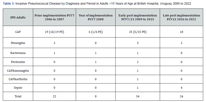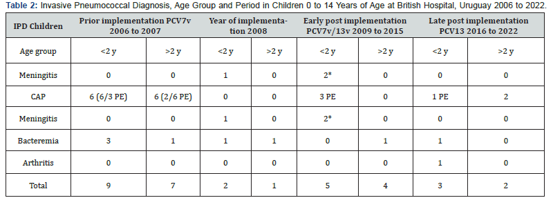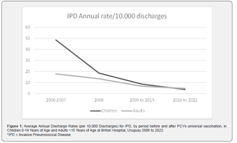 How to cite this article: Mercedes Sánchez-V, Adriana V, Marcelo Eduardo C, Jorge F, Gabriela A, et al. Impact of Pediatric Pneumococcal Vaccination on Pneumonia and Pneumococcal Diseases Hospitalizations in children and adults in a private hospital. Uruguay. Int J Pul & Res Sci. 2025; 8(3): 555737.DOI: 10.19080/IJOPRS.2026.08.555737