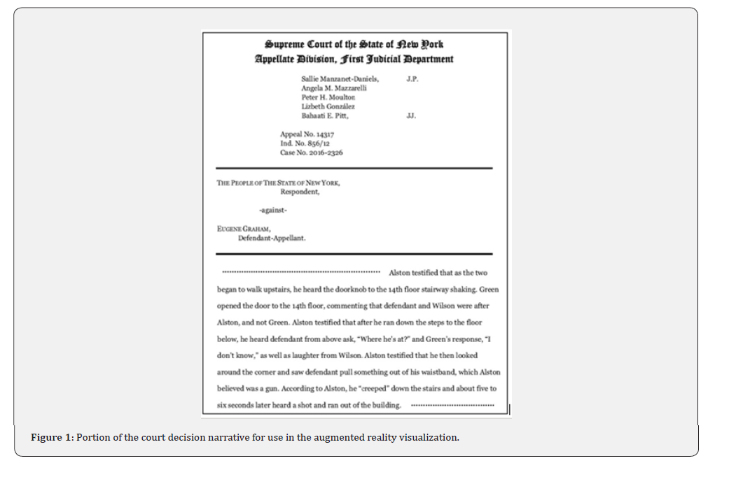 This research utilized the testimony provided by a witness to a homicide of the chain of events that preceded the shooting which led to the murder of the victim (Figure 1). In summary, the details of the case involved two individuals chased into the stairway of an apartment complex by a violent street gang with the intent on killing them for selling narcotics in their territory ultimately leading to the assailant shooting the victim on the landing while the other, the witness, was just out of sight on the staircase leading to a lower floor [11]. To accurately comprehend this segment of the narrative from the court decision, a visual representation is essential to portray the movements and positioning of the shooter, victim, and trajectory of the bullet projectile, thus necessitating the implementation of AR technology.
