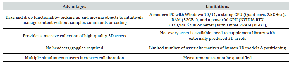 The following table provides a list of advantages and limitations of TwinMotion as a tool for augmented reality in crime scene investigations (Table).