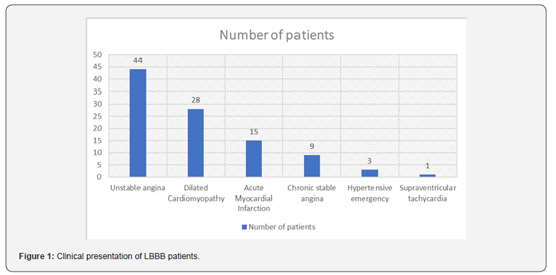 Methods: It is a prospective observational study done in 100 symptomatic LBBB in-patients aged 18 years or above with chest pain/breathlessness admitted to King George Hospital, Visakhapatnam from 1st July 2021 to 30th June 2023. Clinical and angiographic data was analysed and interpreted. Patients with pacemaker-insitu, chronic kidney disease (CKD), iatrogenic, valvular causes and asymptomatic LBBB patients were excluded.