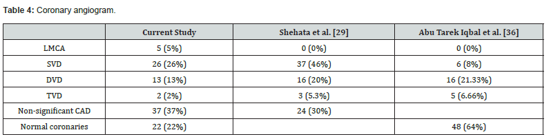 Coronary Angiogram: (Figure 3) (Table 1,2,4)