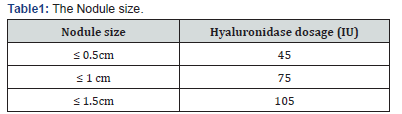 The dosage of hyaluronidase for treating nodules resulting from previous HA filler implants varies in terms of the unit count and volume, influenced by several factors that can affect the outcome. Some dosages have been reported depending on the anatomical regions, 15 nodule size [44] (Table I), the extent of the involved area [45] (Table 2), and the individual authors [46,47] (Table 3).