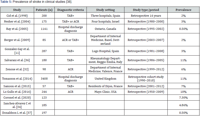 How to cite this article: Oumerzouk Jawad* and Cherkaoui Rhazouani Oussama. Stroke Secondary to Giant Cell Arteritis in a Moroccan Population-Based Cohort of 40 Patients with Giant Cell Arteritis and Literature Review. JOJ Ophthalmol. 2024; 11(2): 555807; DOI: 10.19080/JOJO.2024.11.555807