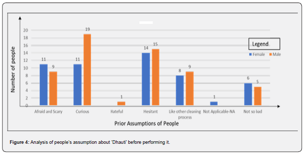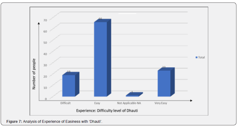 Requests communication was sent, including the Google form link to the questionnaire. The Data was Collected in Google form. Participants have been sent a small note about the data collection and its purpose. In case the participant asked about Dhauti, details about Dhauti and a YouTube link explaining Dhauti were sent to them. On received responses analysis was carried out in Excel, google pivot tables, and graphs were developed, and interpretation was done on that basis.