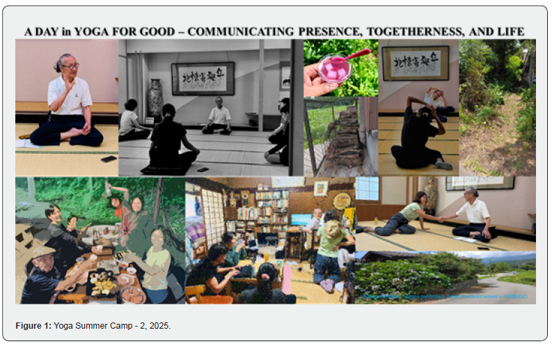 Since 2015, we have been conducting Yoga Classes-Workshops and Lunchtime-yoga as an off-shoot of the GGEC Yoga Course (University of Tsukuba) as social impact projects (TYfA/tYMC) – and we have considered the ‘Role of Yoga in Graduate School’ and as part of that first 10-day Yoga camp was conducted in August 2023, and a subsequent 2-day camp was held in July 2025 at Nakagawa-mura (village - https://www.vill.nakagawa.nagano. jp/) with International and Japanese students (Figure 1) [1].