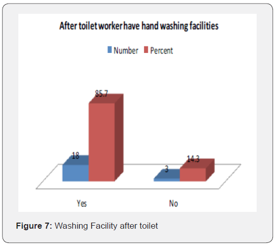 According to the current study 85.7% of milk processing plants in the study area have hand washing facilities and 14.3% of milk processing plants have not fully equipped facility. Toilet doors have self-closing mechanisms and their proper functionality should be monitored regularly. While in current study area no one plants have self- closed toilet.