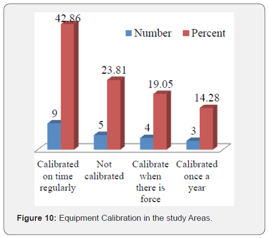 All equipment adequately cleanable, and shall be properly maintained; milk-contact surfaces shall be corrosion-free; seams on food-contact surfaces shall be smoothly bonded or maintained so as to minimize accumulation of food particles, dirt, minimize the opportunity for growth of microorganisms; About 42.9% of milk processing plants had calibrated their equipment’s on regular time, about 23.8% of milk processing plants were not calibrated equipment, about 19% of milk processing plants calibrated equipment when regulatory body force them to calibrate and about 14.3% of milk processing plants were calibrate their equipment once in a year.