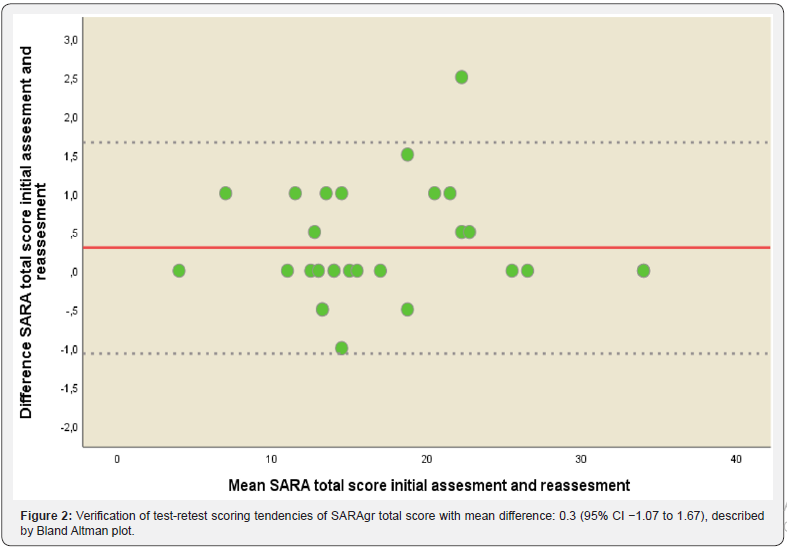 • For test-retest reliability, a second trial of SARAgr was conducted within a 2 week period and was scored by evaluator 1 [15].