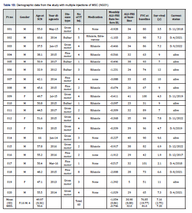 - Petrou P, Gothelf Y, Argov Z, Gotkine M, Levy YS, et al. (2016) Safety and Clinical Effects of Mesenchymal Stem Cells Secreting Neurotrophic Factor Transplantation in Patients with Amyotrophic Lateral Sclerosis: Results of Phase 1/2 and 2a Clinical Trials. JAMA Neurol 73(3): 337-344.