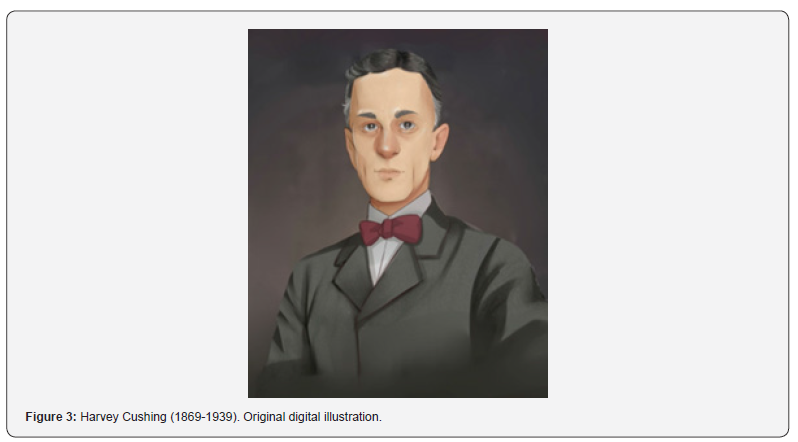 The discovery of the pathology caused by cortical hyperfunction was led by Harvey Cushing. In 1912, he initially reported what he called a “ polyglandular syndrome “ caused by pituitary dysfunction. However, in 1932 he published a series of cases describing the complete clinical picture, consolidating Cushing’s syndrome and establishing the complex interrelationship of the hypothalamic-pituitary-adrenal (HPA) axis [17]. Identifying the etiology, often pituitary or adrenal adenomas, was crucial for guiding therapeutic management, whether surgical or medical (Figure 3).