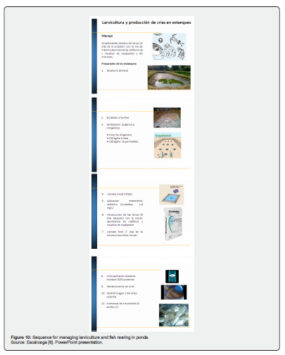 Figure 10 summarizes the sequence of stages in the larviculture and fish rearing process in ponds [9].