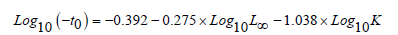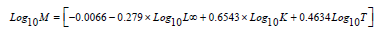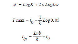 Where: (L∞) and (K) are Von Bertalanffy parameters and (T ) is average annual surface temperature. According to data obtained from relevant local authorities, T is 19.5 oC.