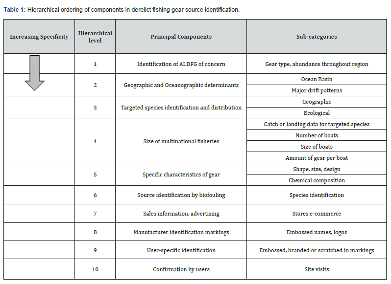 We designed a hierarchical conceptual framework (Table 1) for source identification of ALDFG from multinational margins of the NPO basin and made adaptive changes in response to discoveries inherent in a multi-year, multi-cultural international effort with the collection of tens of thousands of pieces of DEFG. It started by identifying the largest geographic area in which the gear was found, and then focusing with increasing specificity on species distribution, forensic analysis of DEFG, and culminating in visits with the fishing company, boat, or fishermen responsible for its discharge into the ocean.