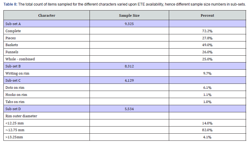 Not usually a part of the conglomerates, but harmful to marine life by both entanglement and ingestion, hard plastic cone-shaped eel trap entrances (ETE, Figure 2A) comprise DEFG on shores throughout the North Pacific. This debris is distinctive and abundant, as illustrated in catalogs of fishing gear on the west coast of the USA [35] and as marine debris [36]. They are also illustrated as common in marine debris throughout the NPO, including Taiwan [37,38], Japan [39,40], Korea [41] and the NPGP [14] and have long been recorded in beach surveys of the NWHI [42].