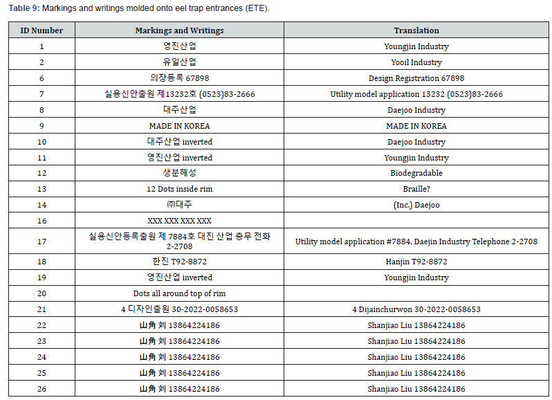 - OSEAN (2021) Eel Traps. In Korea National Beach Litter Monitoring Program - 2021 Annual Report. Ministry of Oceans and Fisheries & Korea Marine Environment Management Organization, Republic of Korea IV 2(6): 124-127.