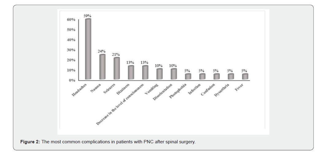 The most common complications reported are presented in Figure 2. Headaches were the most common complaint reported by the patients (22 of 37 patients; 59%). Other complaints were separately depicted in Figure 2.