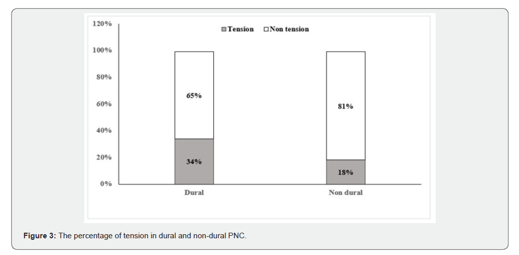 There were 23 (62%) reported cases of spinal surgery associated with dural tears which 6 (26%) were classified as tension PNC (Figure 3). Among the 23 cases, 8 (34%) underwent surgery for treatment, and out of these 8 cases, 6 (75%) showed good results after surgery.