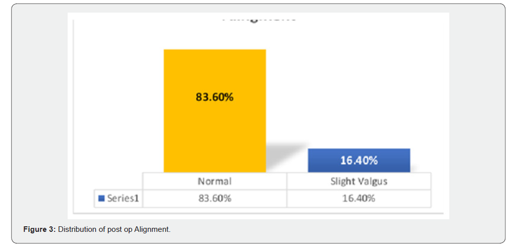 12 patients were assessed mean age 55.83 years. There were five female and seven males in our study. (Figure 1) Mean follow- up was 6.3 months. While assessing the side there were 2 left and 10 big toes involved (Figure 2). Postoperative active MTP joint dorsiflexion and plantar flexion mean 20.41 (range, 10.0- 30.0) and 21.25 (range, 10.0-45.0) degrees, respectively. Pain VAS (mean 2.95 0.79, p-value<0.05) and AOFAS Hallux Mtp-IP Score (mean 84.55 4.72, p value< 0.05) demonstrated clinically and statistically significant improvements (Table 1). Radiographically, no patient demonstrated changes in implant position, implant loosening or subsidence, or implant wear. All patients can wear conventional shoes except one who needs soft and modified shoes. Two patients developed slight valgus deformity (Figure 3).