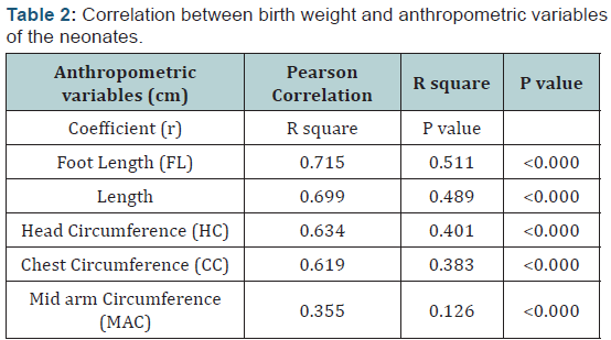 Anthropometry is the measurement of physical dimensions of the human body at different ages. When assessing intrauterine growth, the anthropometric parameters in neonate at birth are considered to be of great value. Comparison of these measurements with standards measurements provides a reliable and simple method of identifying the neonates that deviates from the normal [1]. The physical growth of a newborn is evaluated by comparing body measurements such as weight, length and HC, with standards established in Western countries [2-5]. Birth weight has been accepted as the reliable index of the health status of the community and is an indicator of neonatal morbidity and mortality [2]. Babies with birth weight of less than 2500gm is called as low birth weight babies. They are more susceptible to infection and they do not grow to their full potential of physical and leads to high-infant morbidity and mortality. The perinatal mortality in LBW babies is eight times higher than that in infants weighing more than 2500gms [6]. However, in our country where most of the births take place at home, measuring accurate birth weight is a big problem due to unavailability of weighing scale and trained personnel. So, other authors have used different surrogate anthropometric measurements from different parts of our country to predict LBW babies [2,3]. Hence it is imperative to identify the newborns with LBW and to give them adequate and needed care instantly for their survival. The proportion of LBW infants is particularly high in south- Asia, especially India, where between 20-40% of babies have LBW [4-7]. Thus the present study was conducted to find out the predictor of LBW by measuring the foot length and other anthropometric parameter in neonates.